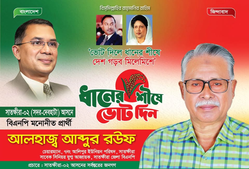 সাতক্ষীরা সদরের ফিংড়ী ইউনিয়নের কুলতিয়া ঘোষপাড়া কালী মন্দিরে অষ্ট প্রহর নামযজ্ঞ অনুষ্ঠানে অংশ নিয়ে অসাম্প্রদায়িক, নিরাপদ ও সমৃদ্ধ বাংলাদেশ বিনির্মাণের অঙ্গীকার ব্যক্ত করেছেন সাতক্ষীরা-২ (সাতক্ষীরা সদর–দেবহাটা) আসনে বিএনপি মনোনীত ধানের শীষের প্রার্থী আলহাজ্ব মো. আব্দুর রউফ। বৃহস্পতিবার (১১ ডিসেম্বর) অনুষ্ঠানে সভাপতিত্ব করেন কালী মন্দির পরিচালনা কমিটির সভাপতি বাপী ঘোষ। প্রধান বিস্তারিত..