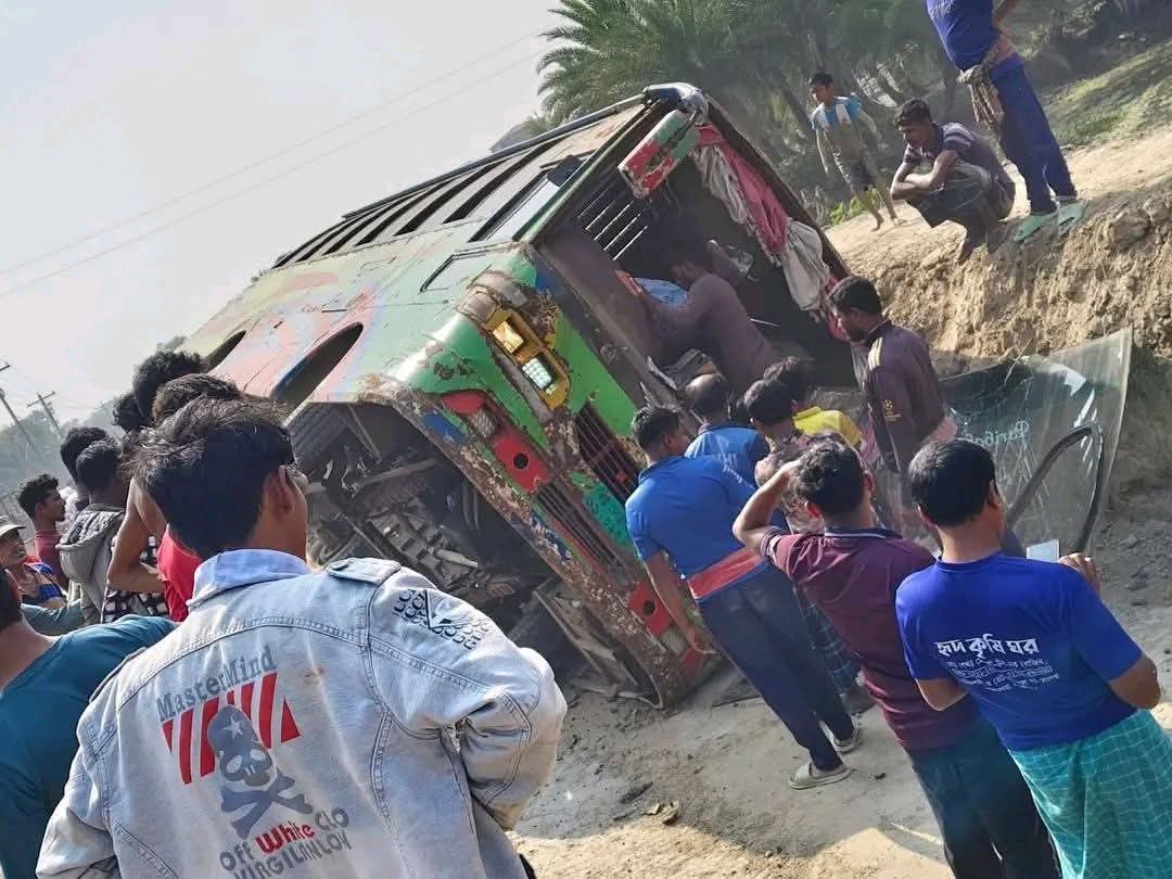 সাতক্ষীরার শ্যামনগরে সড়ক ও জনপদ (সওজ) বিভাগের নির্মাণাধীন সড়কের জন্য খোঁড়া গর্তে একটি যাত্রীবাহী বাস পড়ে গেছে। এতে বাসচালকসহ কয়েকজন