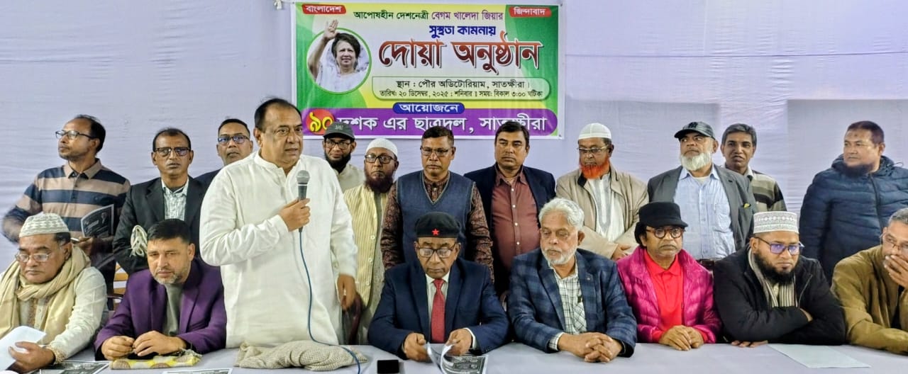 সাতক্ষীরায় সাবেক প্রধানমন্ত্রী বেগম খালেদা জিয়ার দ্রুত সুস্থতা কামনায় দোয়া অনুষ্ঠান অনুষ্ঠিত হয়েছে। শনিবার (২০ ডিসেম্বর) বিকেল ৩টায় পৌর অডিটোরিয়ামে