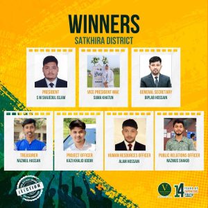 নবগঠিত সাতক্ষীরা জেলা বোর্ডে সহ-সভাপতি হিসেবে নির্বাচিত হয়েছেন সুমা খাতুন। এছাড়া হিউম্যান রিসোর্স অফিসার পদে তানজিল আলম, ট্রেজারার নাজমুল হাসান, প্রজেক্ট অফিসার কাজী খালিদ এবং পাবলিক রিলেশন অফিসার হিসেবে নাজমুল সাকিব নির্বাচিত হয়েছেন।